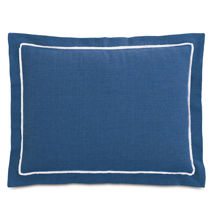 • Double row of Ocean Blue satin stitched embroidery on flat sheet and cases