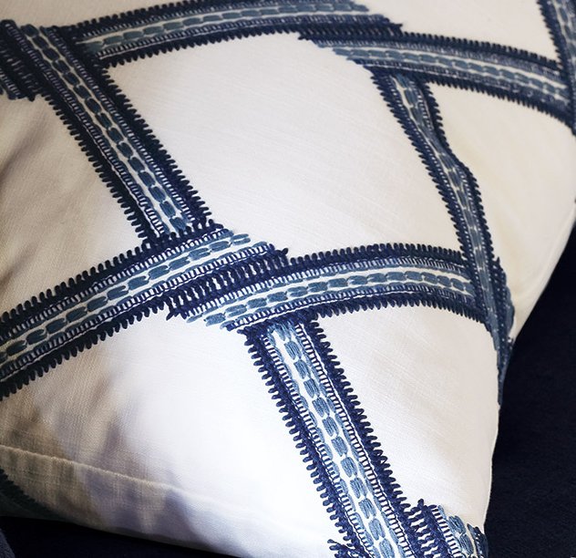 A contemporary take on a cottage trellis design, our Blue Lattice Pillow adds a light, airy touch of color to your bedroom. It's a classic blue and white bedroom accent.